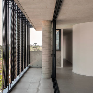 Projetado na região mais elevada da cidade, ele abre suas varandas e esquadrias piso ao teto para revelar uma vista panorâmica que alcança áreas verdes de preservação e o rio Iguaçu ao fundo. Aqui, o nascer e o pôr do sol se tornam parte da rotina, refletidos em ambientes que integram o dentro e o fora com naturalidade.