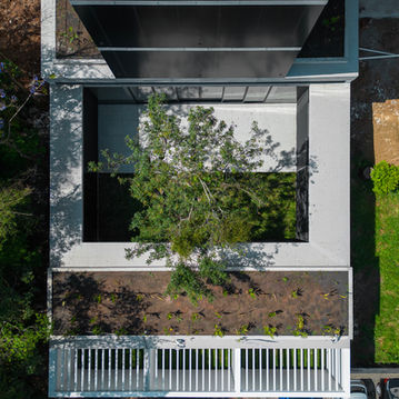 • Hall de acesso inteiramente envidraçado, integrado ao jardim frontal